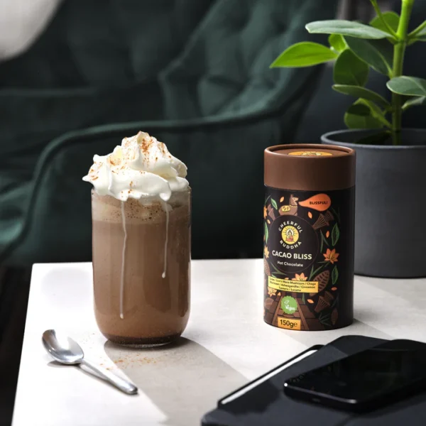 Antioxidant-packed Lion’s mane hot chocolate infused with functional mushrooms for focus, immunity, and relaxation. 150g net weight.
